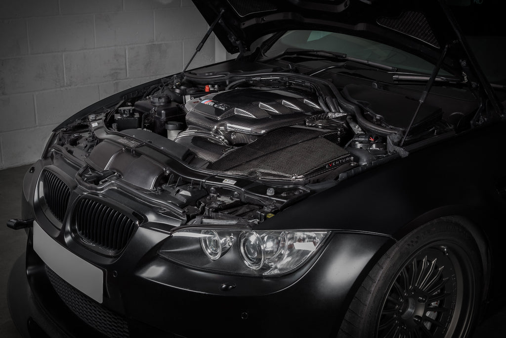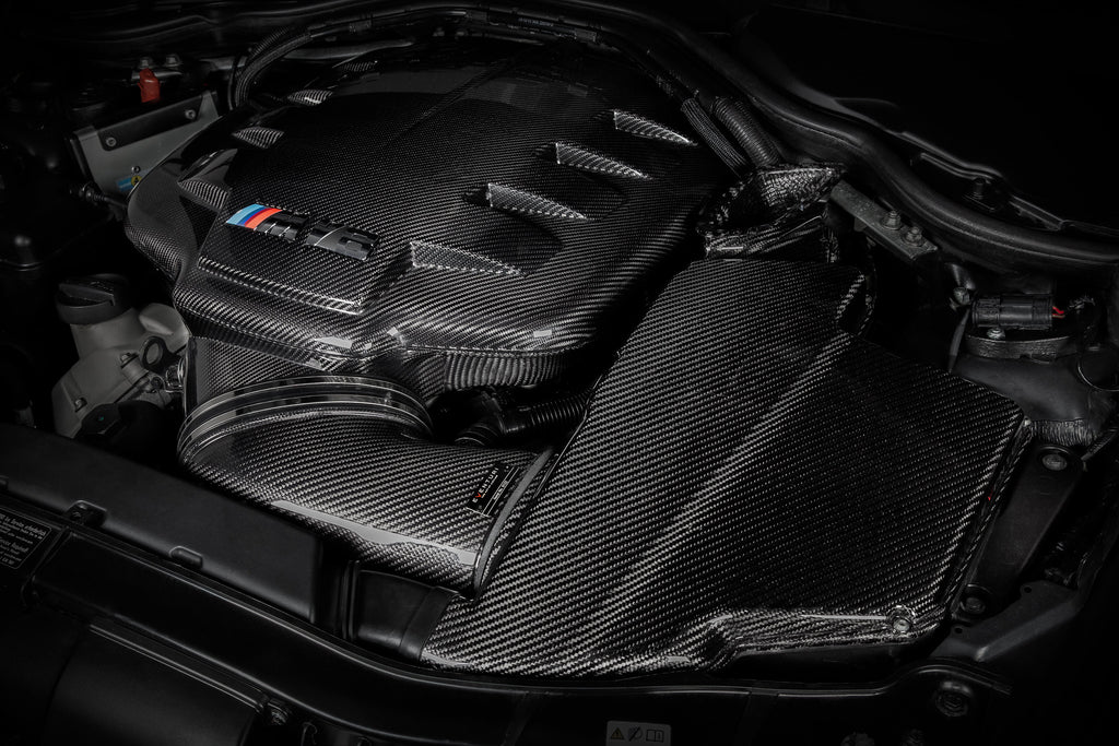 Introducing our E90/E92/E93 M3 Carbon Fiber Plenum. Made from 100% high grade prepreg carbon including the internal trumpets, this plenum replaces the stock plastic version and unleashes the roar of the naturally aspirated BMW V8 engine. Since the trumpet lengths are tuned by BMW to the internal volume, changing this could result in a loss of performance so we kept the same volume to not upset the way the car drives in terms of power delivery. Although there isn’t a performance gain from the carbon plenum, the induction sound generated takes the driving experience of the M3 to a whole new level. The raw V8 rumble gives the M3 an almost CSL like sound and is truly an intoxicating experience. We went through several iterations using different carbon thicknesses to fine tune the sound and the resulting plenum generates an almost unbelievable induction volume and tone.