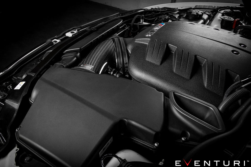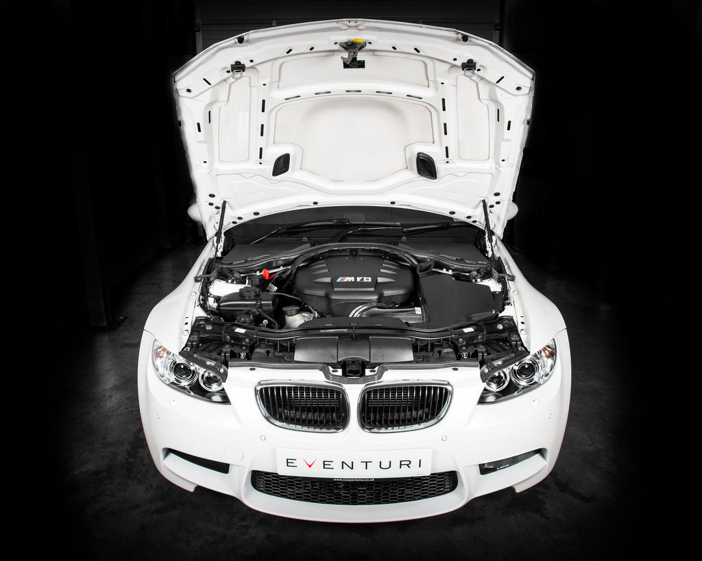 The BMW E90/E92/E93 M3 Eventuri intake system is the result of extensive research and optimisation which improves possibly one of the best designed stock intake systems we have seen. The E9X stock airbox system is a brilliantly designed intake with an excellent flow path and feed system for ambient air. However on closer inspection, there are restrictions in the inlet tube connecting the airbox to the inlet manifold. By redesigning the tube yet maintaining the airbox, we have been able to allow the V8 engine to breathe with greater efficiency and therefore gain power. In addition to the new tube design, we also identified a further restriction in the air feed system. To overcome this we designed a scoop to allow an increase in airflow through the airbox. This reduces inlet temperature values further and adds to the performance gain of the system.