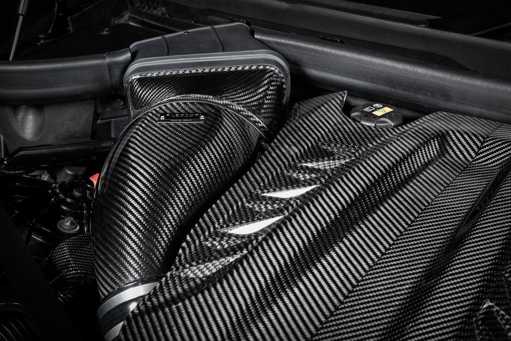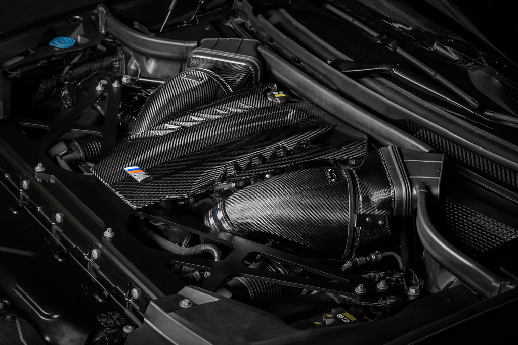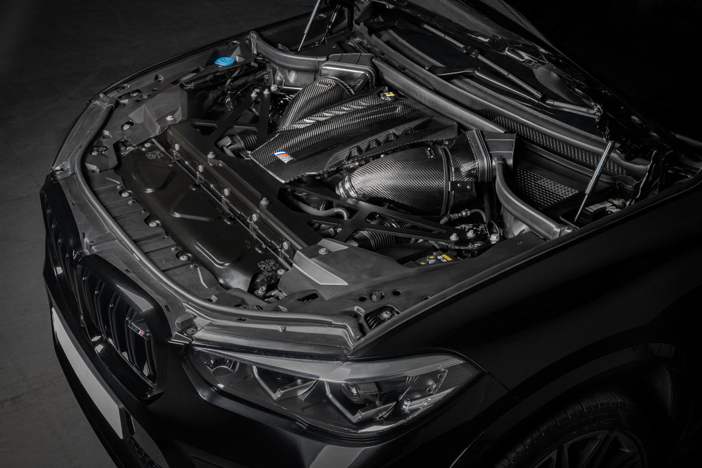 Introducing our F9X X5M, G09 XM intake. This intake is the result of extensive R&D and testing to improve on the flow path of the stock system. Our system is a complete redesign of the stock airboxes with the aim of reducing pressure loss while increasing the flow rate and keeping inlet temperatures low. With the stock cold air feeds at the front of the car and the turbo inlets facing the rear of the car, the airflow has to negotiate a 180 degrees turn through each airbox resulting in a flow restriction. To overcome this we have introduced an additional cold air feed from the scuttle panel, which results in a more direct flow path to the turbo inlets. The additional feeds allow the intake to have a higher flow rate whilst keeping IATs low and have an additional benefit of de-restricting the sound of the turbos. With the intake openings now facing the cabin, the turbo flutter and pressure release sounds are clearly audible, elevating the driving experience to another level.
