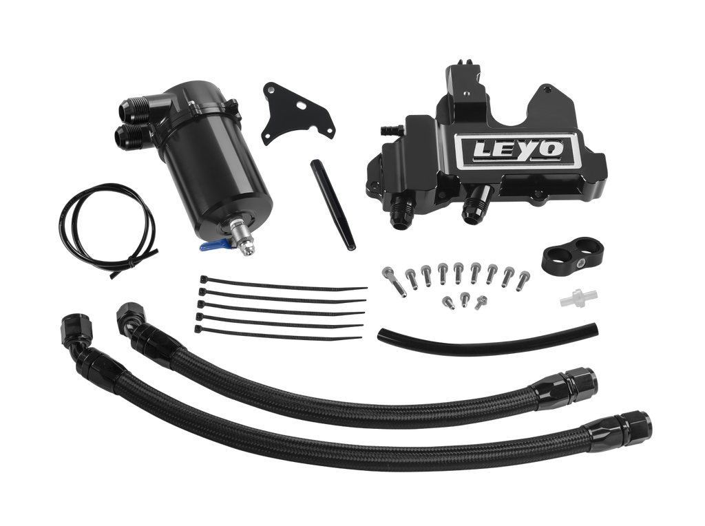 Protect your engine by preventing excessive crankcase oil vapor entering the intake and carbon build up with LEYO Oil Catch Can Kit. Also known as blow-by, oil vapor is produced under load, spirited driving elevates oil vapor level at an incredible rate, it is then circulated back into the intake tract resulting in carbon buildup of the intake valve, trapped oil residuals in both intake tract and intercooler. Unfiltered recirculated oil vapor will not only diminish performance, but also impose devastating effect to the engine.